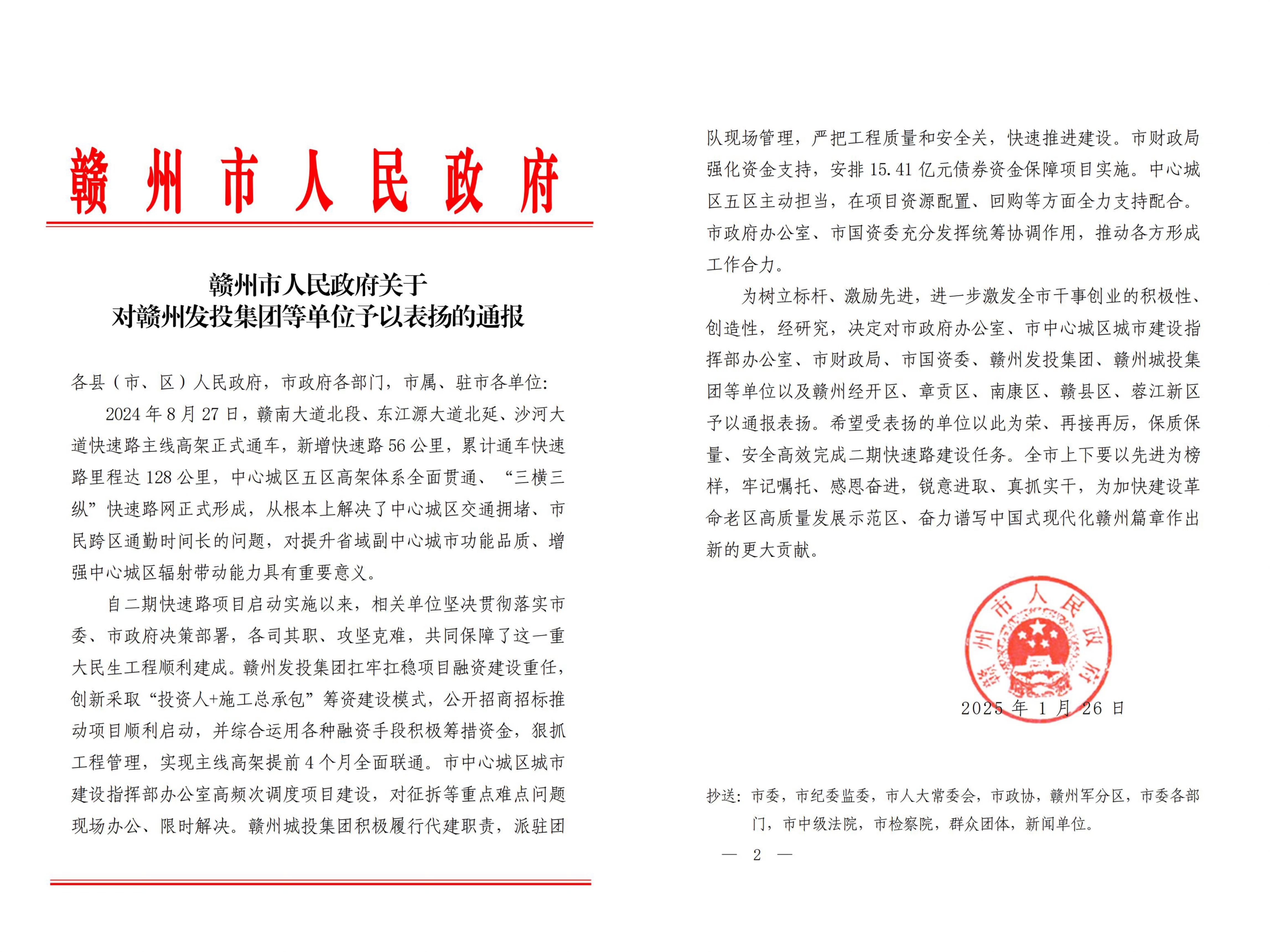 2025年贛州市人民政府嘉獎通報