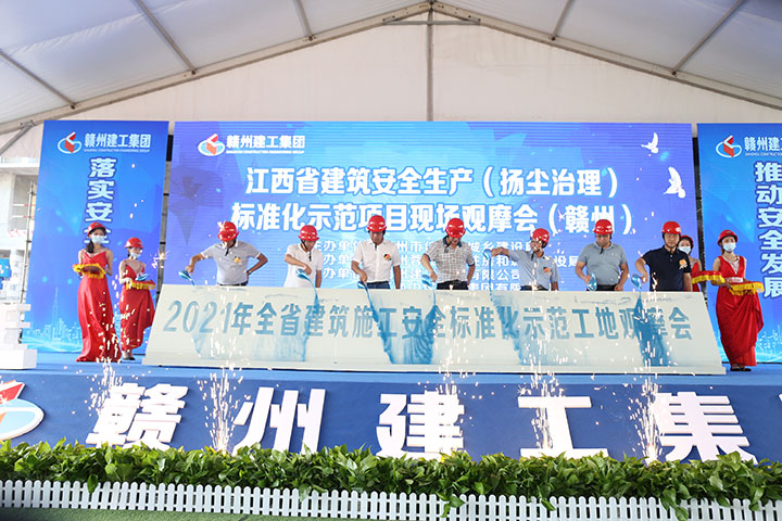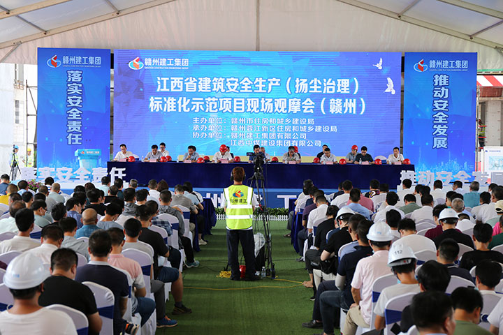 日前,2021年江西省建筑施工安全生產(chǎn)(揚(yáng)塵治理)標(biāo)準(zhǔn)化示范項(xiàng)目現(xiàn)場觀摩會(贛州)在贛州城投集團(tuán)星洲萃苑(一期)項(xiàng)目工地成功舉辦,會議主題為“落實(shí)安全責(zé)任,推動安全發(fā)展”。市住建局、市應(yīng)急局、蓉江新區(qū)管委會、贛州城投集團(tuán)有關(guān)領(lǐng)導(dǎo),以及來自各縣(市、區(qū))住建主管部門分管領(lǐng)導(dǎo)和安全監(jiān)督機(jī)構(gòu)負(fù)責(zé)人,市本級在建項(xiàng)目企業(yè)代表,新聞媒體記者等共計(jì)200余人走進(jìn)項(xiàng)目施工現(xiàn)場,重點(diǎn)對星洲萃苑(一期)項(xiàng)目建筑施工安全生產(chǎn)標(biāo)準(zhǔn)化、綠色文明施工、智慧工地管理等方面進(jìn)行了全方位的觀摩學(xué)習(xí)。