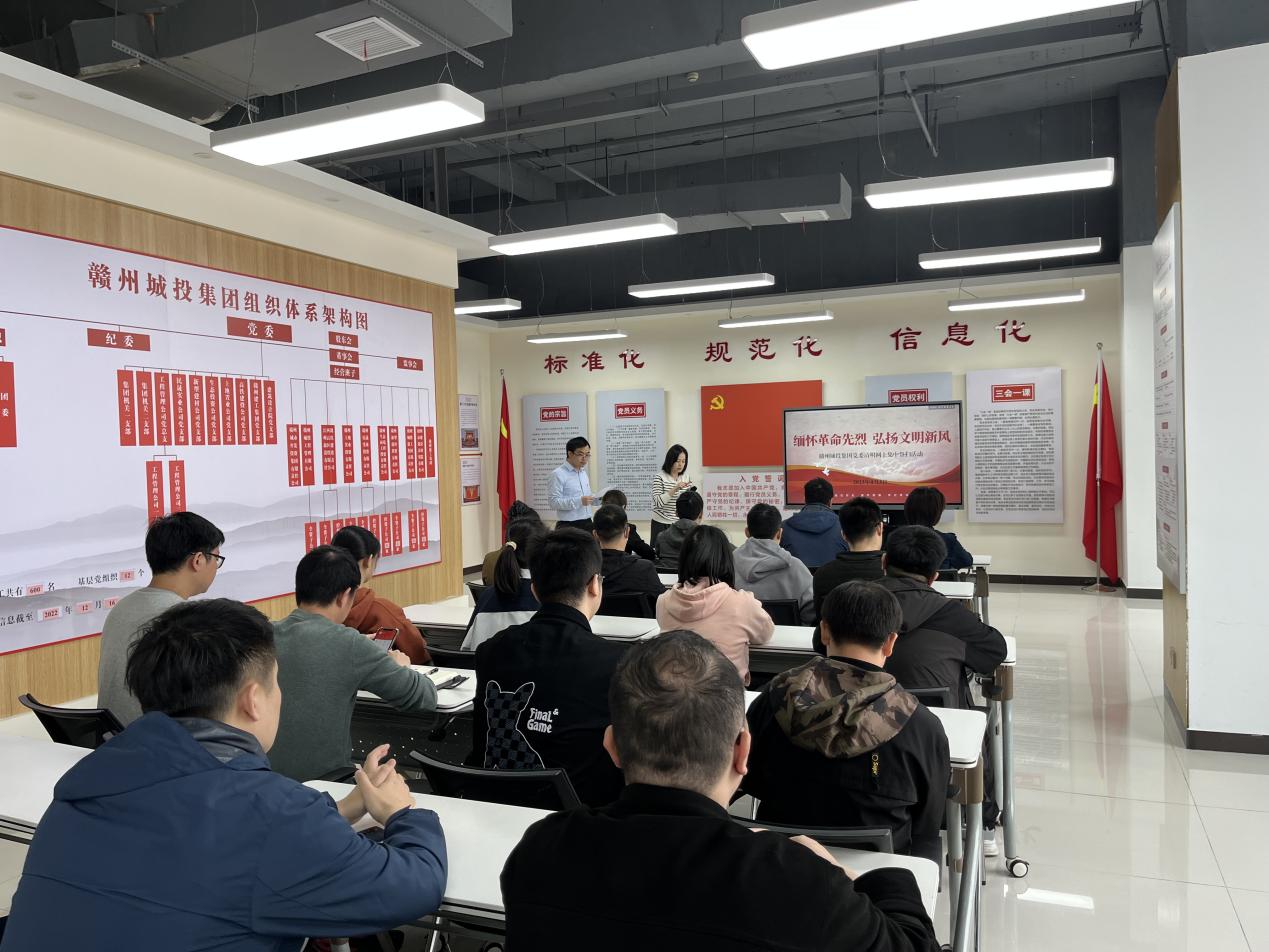 活動當天,集團各子公司、項目部紛紛開展清明網(wǎng)上祭奠活動。工程管理公司的黨員在項目工地上通過向烈士集體默哀,致以崇高的敬意和深情的哀思。他們面向黨旗、莊嚴肅立、舉起右臂,重溫入黨誓詞。民晟實業(yè)公司利用責(zé)任轄區(qū)小區(qū)電梯間宣傳區(qū)宣傳《清明期間安全溫馨提示》,并向320余名住戶和商戶發(fā)放贛州市文明辦、贛州市民政局聯(lián)合印發(fā)的《清明節(jié)文明祭掃倡議書》,積極引導(dǎo)市民參與文明祭掃活動。