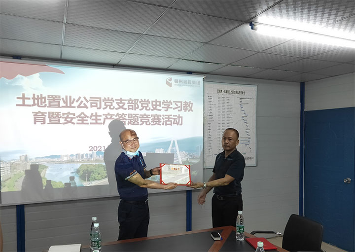 為進(jìn)一步鞏固深化黨史學(xué)習(xí)教育成果,促進(jìn)建黨100周年期間的安全生產(chǎn)工作,日前,土地置業(yè)公司黨支部在星洲灣·九境項(xiàng)目部會(huì)議室舉辦建黨100周年黨史學(xué)習(xí)教育暨安全生產(chǎn)答題競賽,土地置業(yè)公司全體員工,星州潤達(dá)集團(tuán)、贛州建工集團(tuán)、星洲地產(chǎn)部分代表等20余人參加。