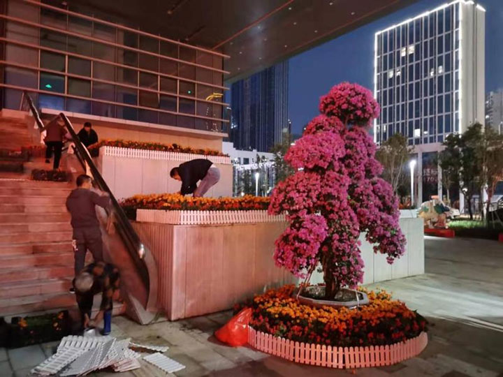 工程公司項目部克服當(dāng)前人員少、項目建設(shè)工作任務(wù)重的困難,安排專人日夜施工,及時完成了外圍綠化提升,聯(lián)合民晟實業(yè)公司實施氛圍營造工程,打造了一個莊重喜慶的會場氛圍。
