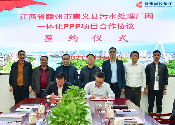 11月5日,贛州城投集團與崇義縣簽訂城鄉(xiāng)污水處理廠網(wǎng)一體化PPP項目合作協(xié)議,崇義虔安水環(huán)境公司與崇義縣城管局代表雙方進行簽約,贛州城投集團黨委副書記黃家偉、崇義縣副縣長魏江華等見證簽約并作講話。崇義縣城管局、生態(tài)投資公司相關負責人等參加簽約儀式。