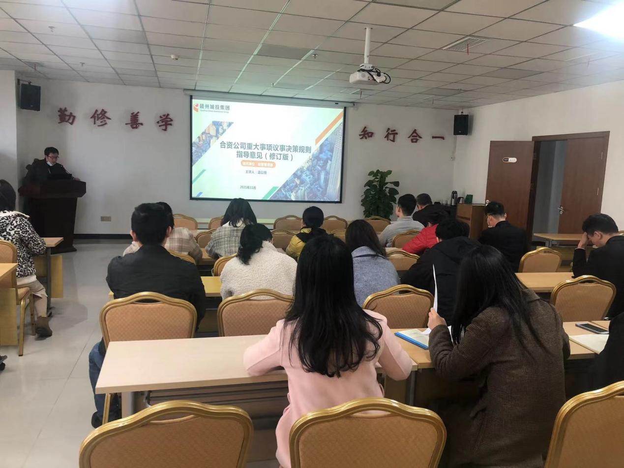 日前,贛州城投集團黨委黨校舉辦合資公司重大事項議事決策規(guī)則指導意見專題培訓,集團經(jīng)營管理部人員對相關內容進行宣貫。集團相關業(yè)務部門、一級子公司經(jīng)營管理人員以及集團外派人員等參加此次培訓。