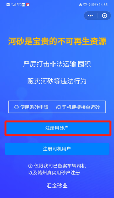 3.選擇“注冊用砂戶” 第五步:企業(yè)下單 1. 選擇“袋裝砂” 2.選擇“購砂申請”