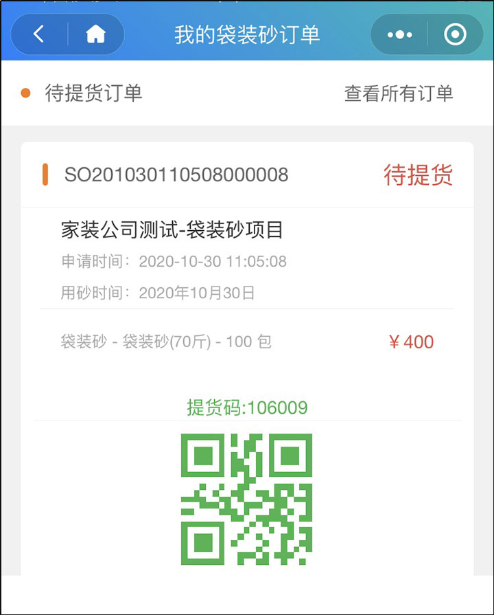 提交訂單后,在“我的訂單”中查看待提貨訂單,憑借提貨碼到提貨點提貨。