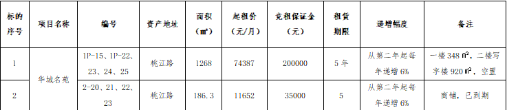 二、招租標(biāo)的、起租價及競租保證金