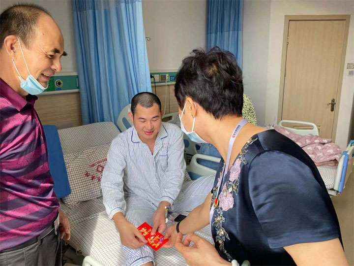 病房內(nèi),慰問小組詳細(xì)了解了職工家屬的病情及身體狀況,囑咐其安心養(yǎng)病,早日恢復(fù)健康。家屬對集團(tuán)黨委表達(dá)了真摯的感謝,并表示,此次慰問讓他深切感受到了“城投大家庭”的溫暖,他一定會好好配合治療,爭取早日康復(fù)出院。