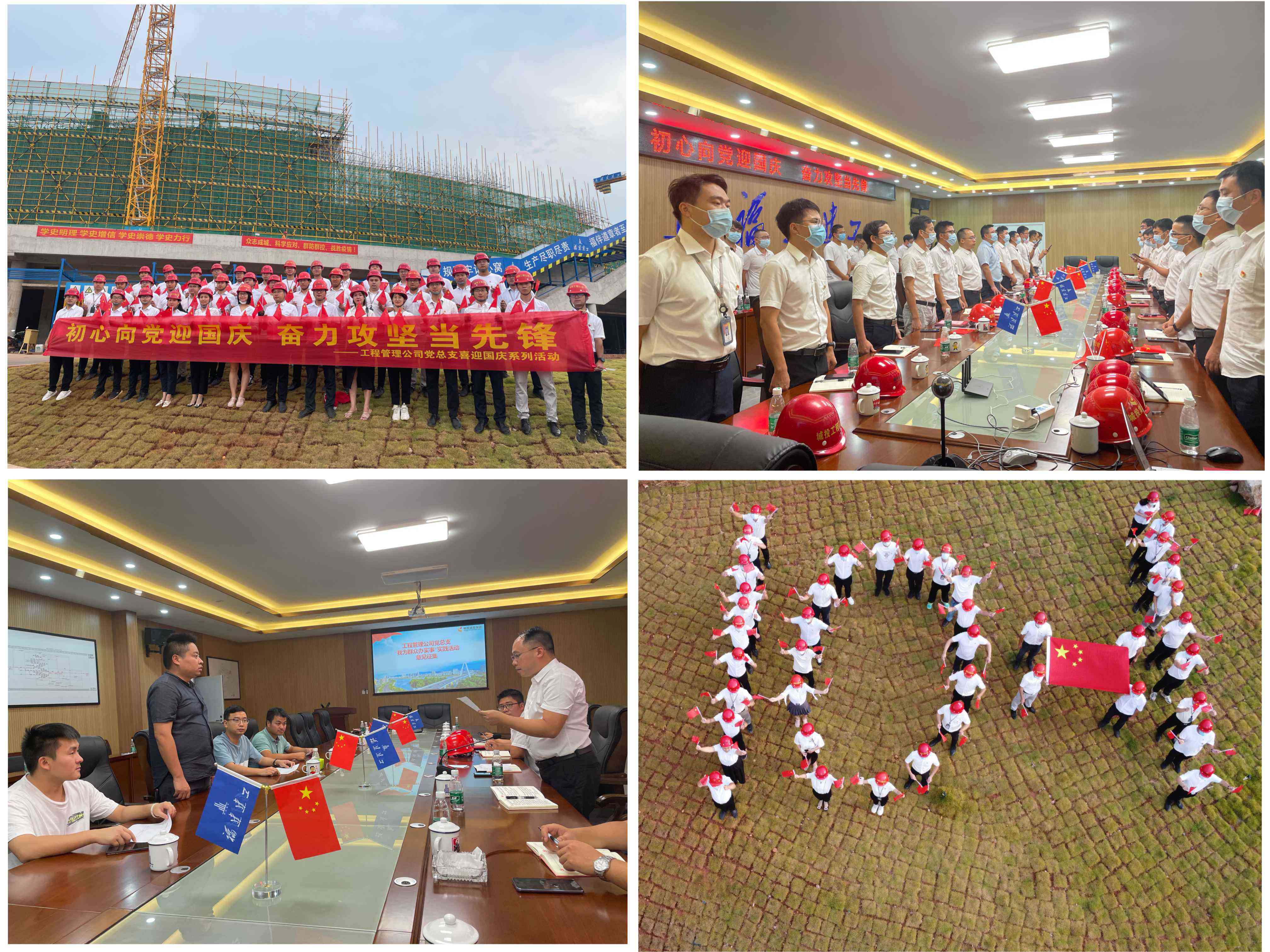 工程管理公司黨總支:“10.1”造型的中國紅飄揚在工地上