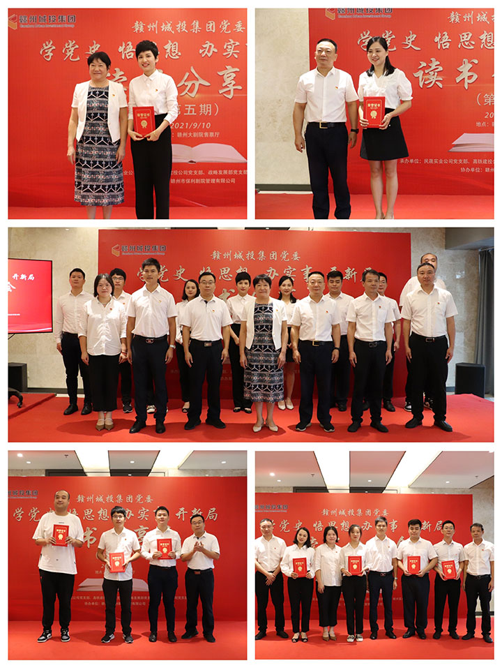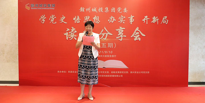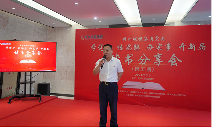 9月10日,為推動(dòng)黨史學(xué)習(xí)教育有特色、出成效,贛州城投集團(tuán)黨委在贛州大劇院售票廳舉辦“學(xué)黨史 悟思想 辦實(shí)事 開新局”黨史學(xué)習(xí)教育第五期讀書分享會(huì)。市國(guó)資委二級(jí)調(diào)研員宋英蒞臨指導(dǎo),集團(tuán)黨委副書記黃家偉出席并作點(diǎn)評(píng)講話,集團(tuán)董事會(huì)秘書、集團(tuán)相關(guān)部門負(fù)責(zé)人、各黨支部書記及部分黨員參加。