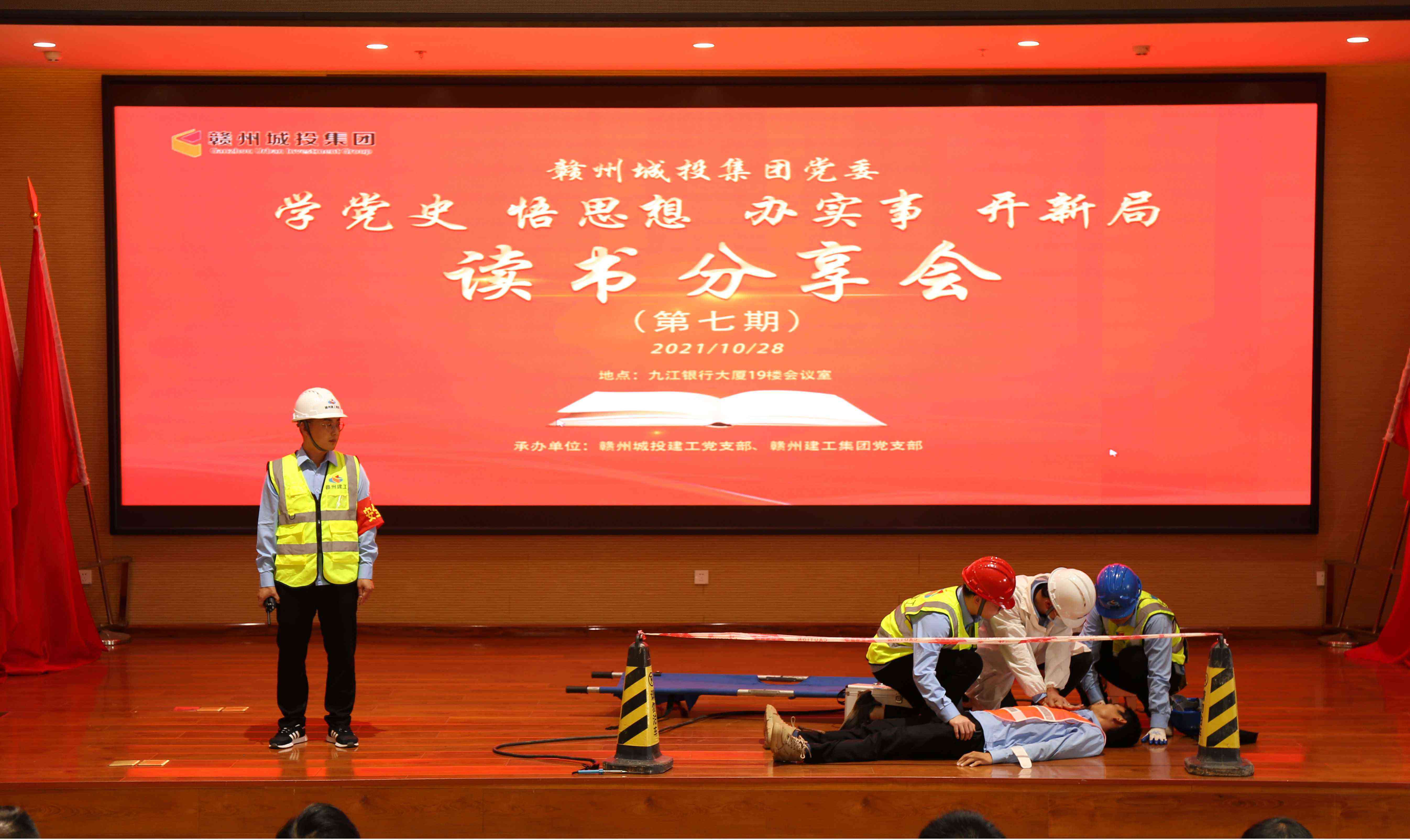 活動在紅色歌曲《唱支山歌給黨聽》中拉開帷幕,抒發(fā)了城投人對黨、對祖國的無比熱愛之情。讀書分享活動中,來自贛州城投建工黨支部、贛州建工集團(tuán)黨支部的6位選手結(jié)合黨史學(xué)習(xí)教育和工作實(shí)際,以蓬勃的朝氣、真摯的感情,熱情謳歌了中國共產(chǎn)黨建黨100年來創(chuàng)下的豐功偉績,深情講述了革命先輩的感人事跡,突出宣傳了國企改革、創(chuàng)新發(fā)展、項(xiàng)目攻堅(jiān)等方面取得的重大成就,充分展現(xiàn)了城投集團(tuán)廣大黨員職工為群眾服務(wù)、愛崗敬業(yè)、無私奉獻(xiàn)的精神風(fēng)貌。以賽促學(xué)、以賽明史,經(jīng)過角逐,贛州建工集團(tuán)黨支部的陳文港以優(yōu)異表現(xiàn)獲得第一名,贛州城投建工黨支部的曾涵鈺獲得第二名,其余選手獲得優(yōu)秀獎。讀書分享活動前,來自項(xiàng)目一線員工還為大家表演了情景劇《觸電事故應(yīng)急演練》,進(jìn)一步為大家普及安全知識,提高大家的安全意識。