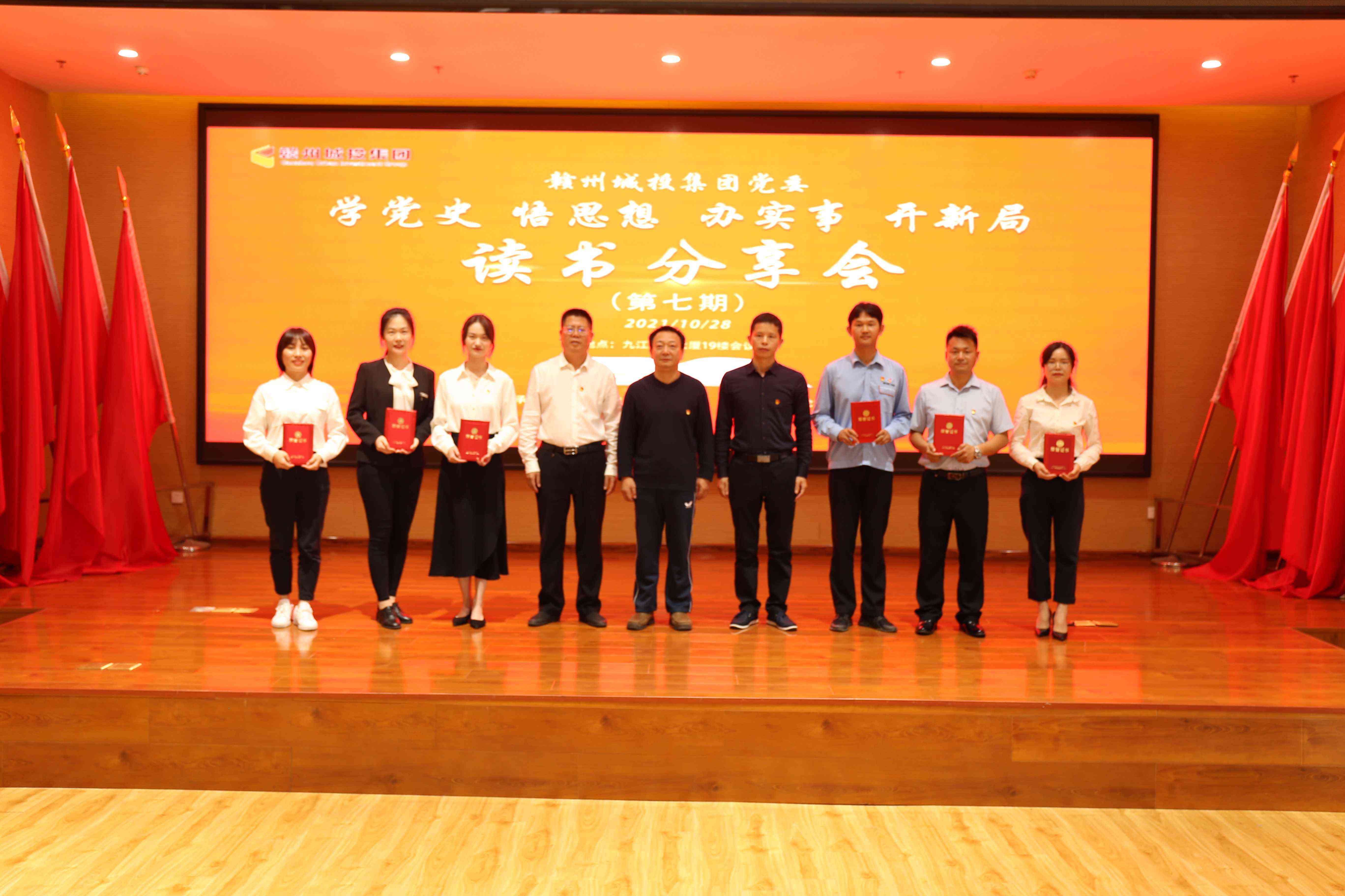 為引導(dǎo)廣大黨員學(xué)好百年黨史,傳承紅色基因,凝聚奮進(jìn)力量,10月28日下午,贛州城投集團(tuán)黨委在九江銀行大廈19樓會議室舉辦“學(xué)黨史 悟思想 辦實(shí)事 開新局”第七期讀書分享會。市國資委黨委黨史學(xué)習(xí)教育領(lǐng)導(dǎo)小組辦公室副主任、宣教科科長謝達(dá)迎應(yīng)邀到場指導(dǎo),集團(tuán)黨委副書記黃家偉,集團(tuán)黨委委員、紀(jì)委書記蔡勇出席,辦公室、黨群、財(cái)務(wù)等評委,贛州城投建工黨支部、贛州建工集團(tuán)黨支部全體黨員、集團(tuán)其它支部黨員代表和員工共計(jì)60余人參加活動。