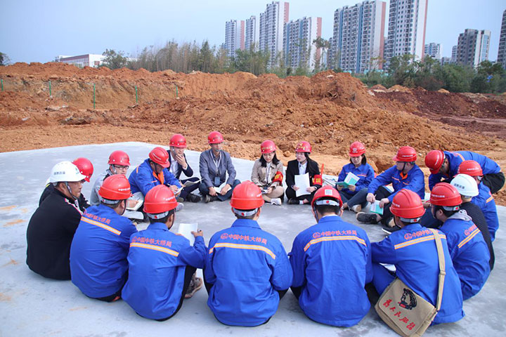 “城投廉音”宣講人在中國南方稀有金屬貿(mào)易集散中心項目為職工宣講集團相關(guān)制度