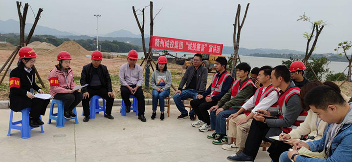 “城投廉音”宣講人在贛州中心城區(qū)建筑垃圾資源化利用及水西棄土場項目為職工宣講集團相關(guān)制度